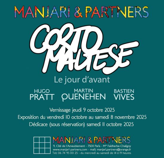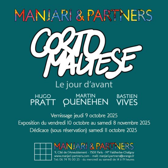 Du 14 au 22 décembre 2023 et du 10 au 27 janvier 2024 exposition pour la sortie de l’album « La reine de Babylone » Corto Maltese. Bastien Vives et Martin Quenehen continuent de réinterpréter le mythe créé par Hugo Pratt chez Casterman.
